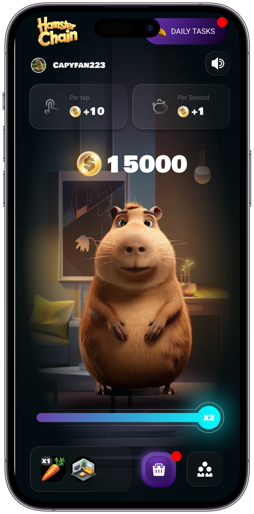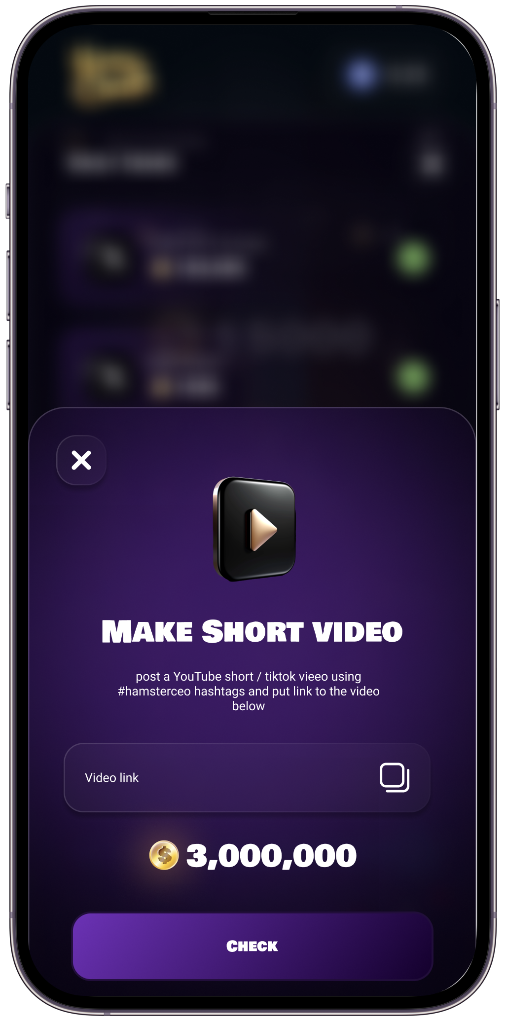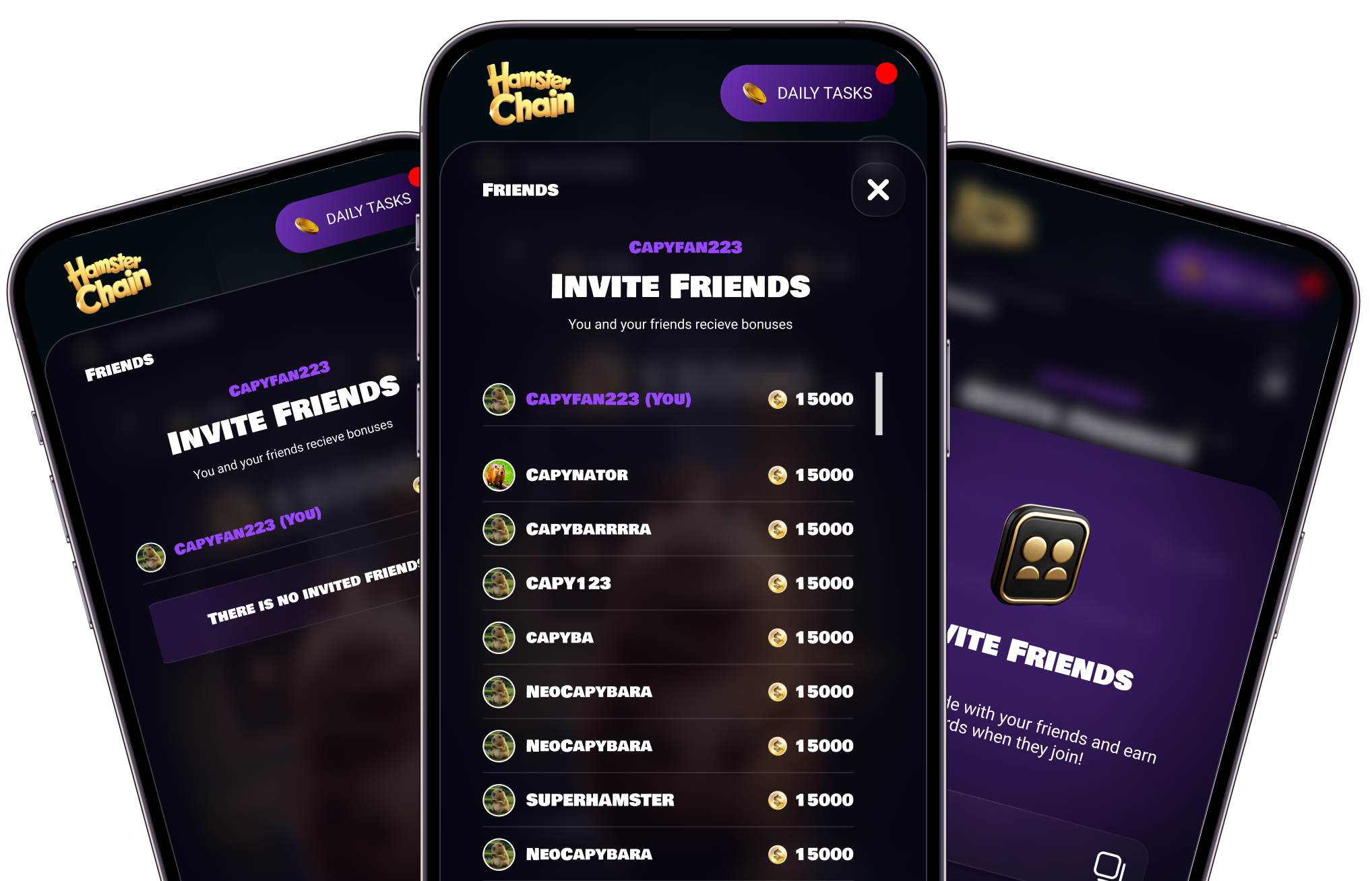 Share $HAMSTER on X every 24 hours, create Youtube & TikTok videos & invite your friends to get massive amounts of coins
